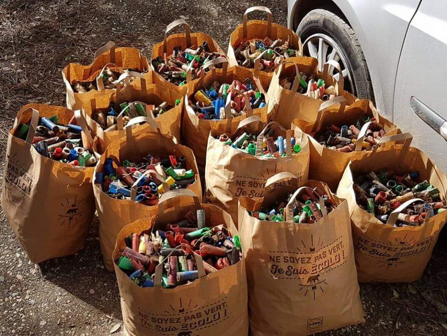 Nous trouvons aussi sur leur page des mensonges grossiers. Voici une photo qui montre des sacs remplis de cartouches vides. Cette photo a été utilisée par tous les anti-chasse de France et de Navarre avec la légende suivante : « voici ce que les chasseurs laissent traîner dans la nature. heureusement que nous sommes là pour ramasser leurs déchets… »