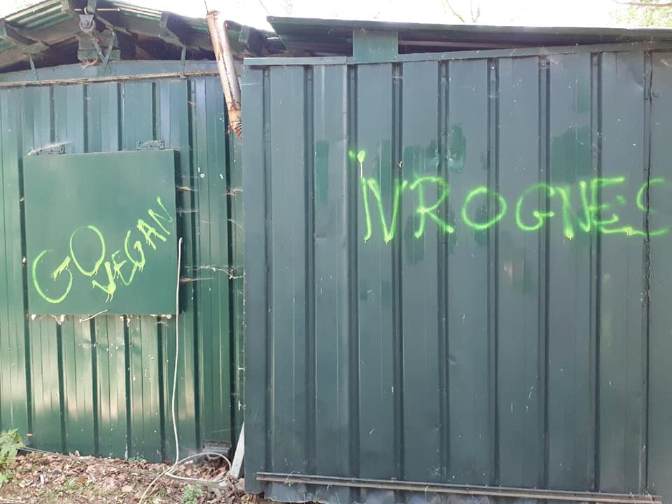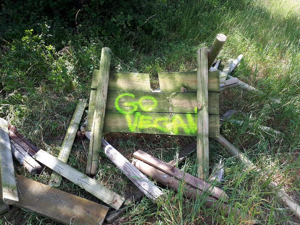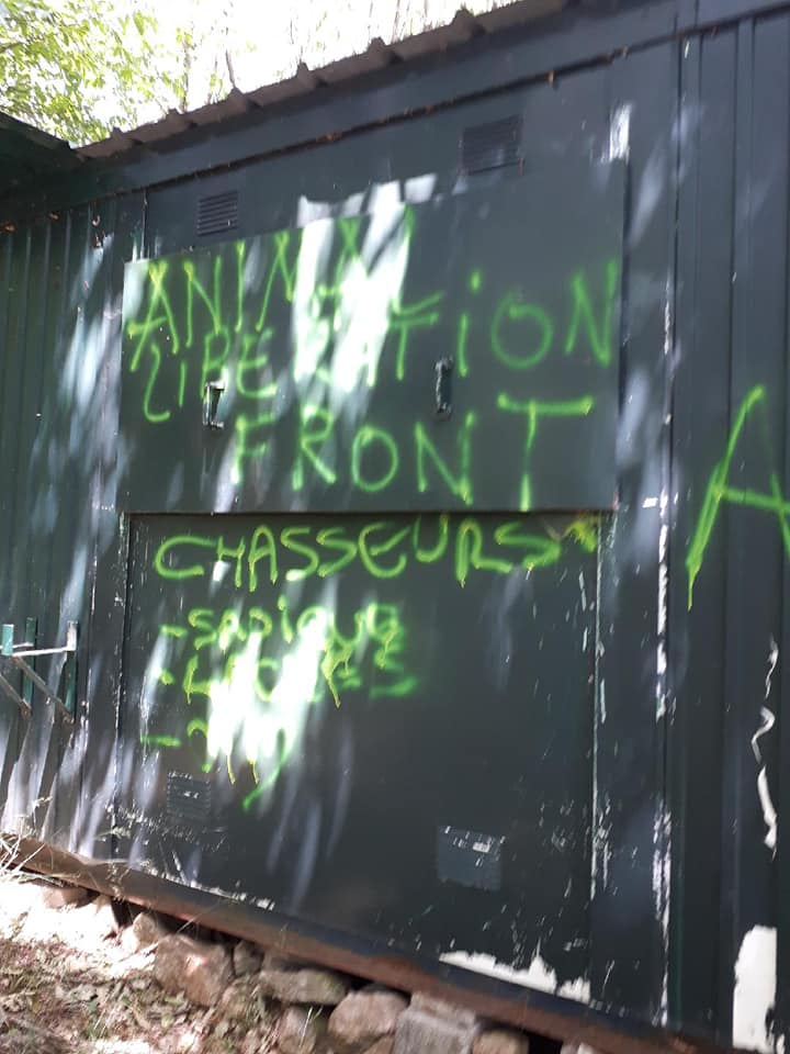 Voici ce que des extrémistes vegan on fait à notre cabane de chasse et 5 de nos miradors, mis en place par nous les chasseurs pour assurer la sécurité de tous les usagers de la forêt.