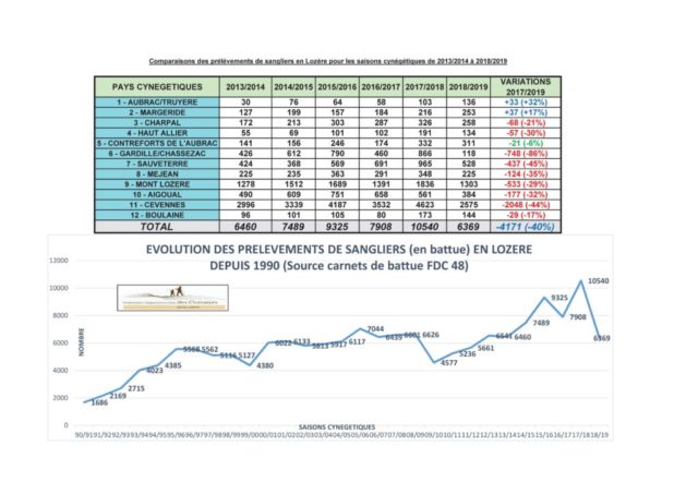 Et pour la saison écoulée le sanglier n’était pas présent en masse en Lozère. En effet, les chasseurs de l’ensemble du territoire ont pu le constater avec des battues moins riche en sanglier.