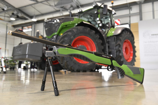 Il y a maintenant quelques semaines les marques Sauer et Fendt, avaient créé la stupéfaction en créant une carabine Sauer 404 Fendt 1050 Vario. Cette carabine est l’unique modèle de sa conception, elle reprend les codes du Fendt 1050 ce tracteur de 500 chevaux, pesant plus de 14 tonnes.