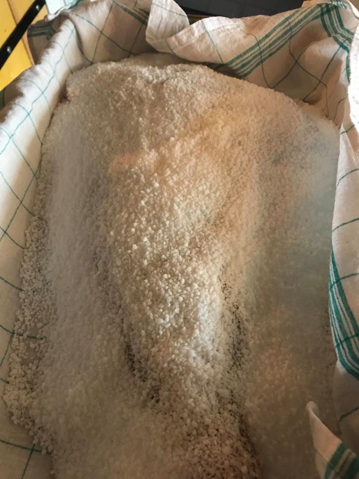 Mettre dans le gros sel à raison de 2 jours/kg + 2 jours ( soit 10 jours pour un cuissot de 4 kg….. 4×2+2)