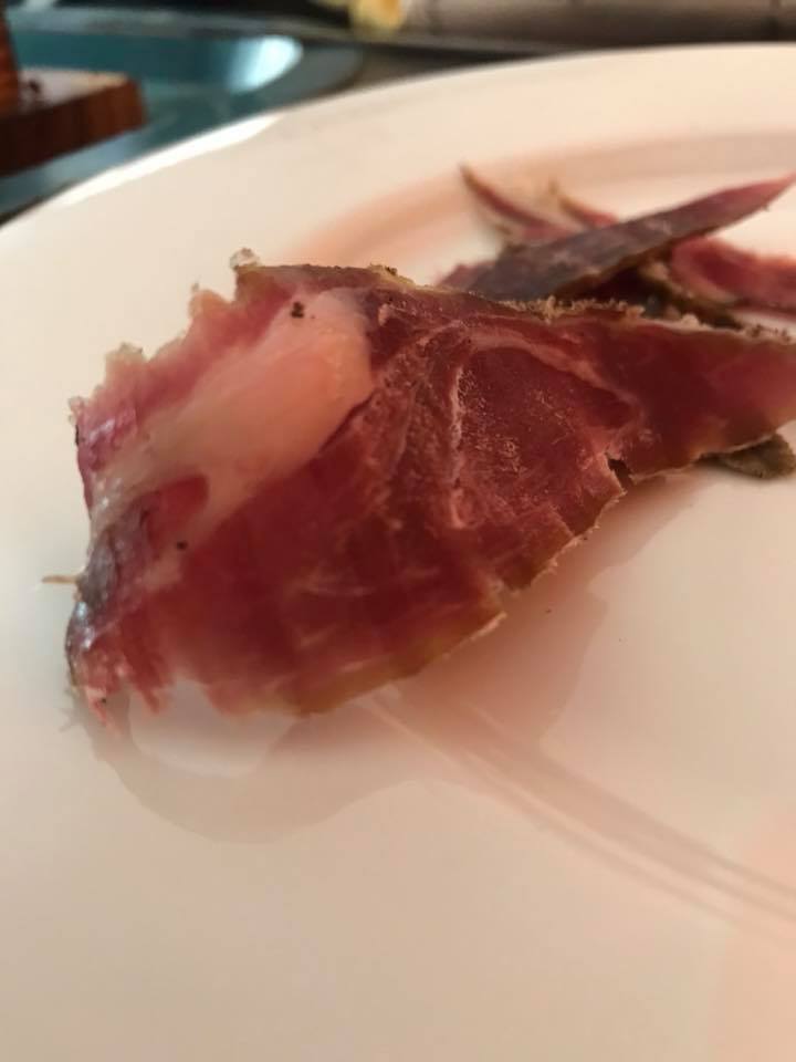 Ensuite j’ai poivré et mis dans un sac à jambon, dans un cellier, pendu . 1 mois pile car au final l’épaule n’était pas très épaisse.