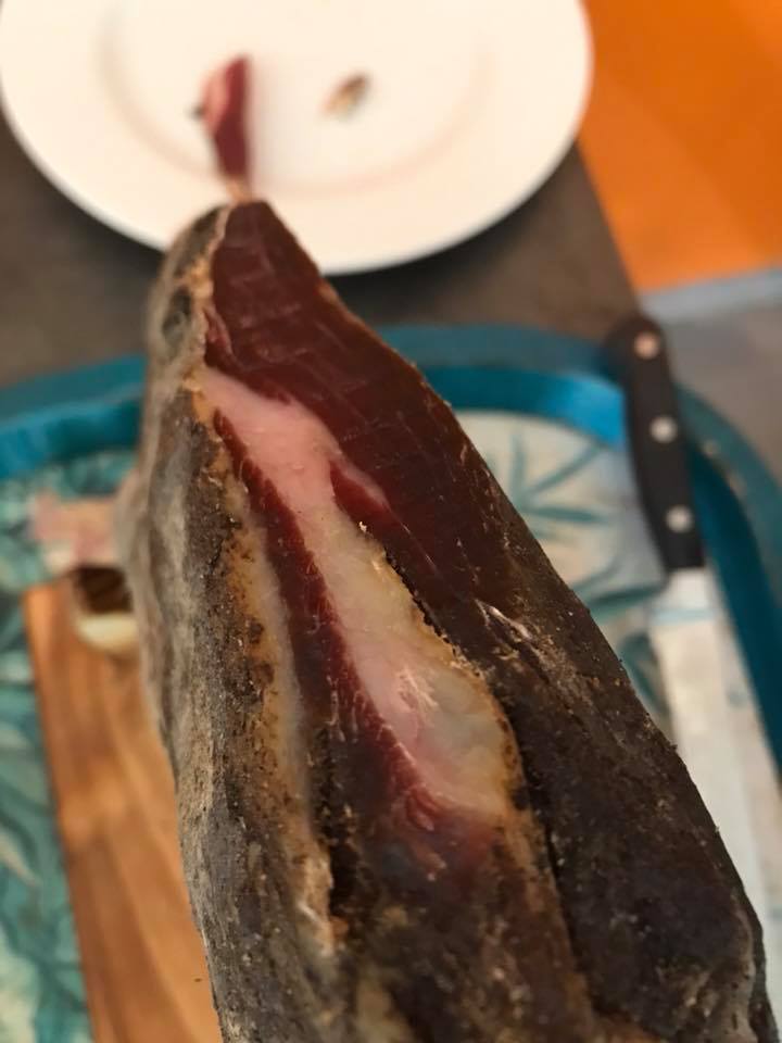 Tu le frottes bien au poivre, tu le mets dans un sac à jambon et tu le laisses affiner 9 à 12 mois dans un endroit sec et ventilé.